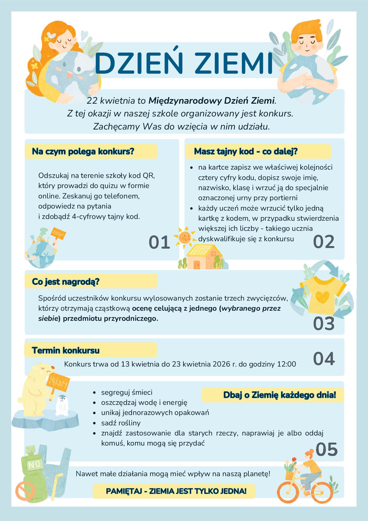 Zapraszamy dzieci z naszej szkoły tańczące w duetach lub w większych formacjach do udziału w konkursie tanecznym "Rozśpiewane Siechnice". Dzieci mogą się dobrać samodzielnie i zgłosić się do konkursu, jeśli taniec to ich pasja.Termin zgłoszenia do konkursu- 31.03.2026 r. , konkurs odbędzie się 17.04.2026 r. w SP 2 w Siechnicach (koszt wpisowego ponoszą rodzice). Zgłoszenia chętnych prosimy kierować do pani Alicji Stefanowskiej (wychowawca świetlicy- s. 201, 204) osobiście lub przez DE.
