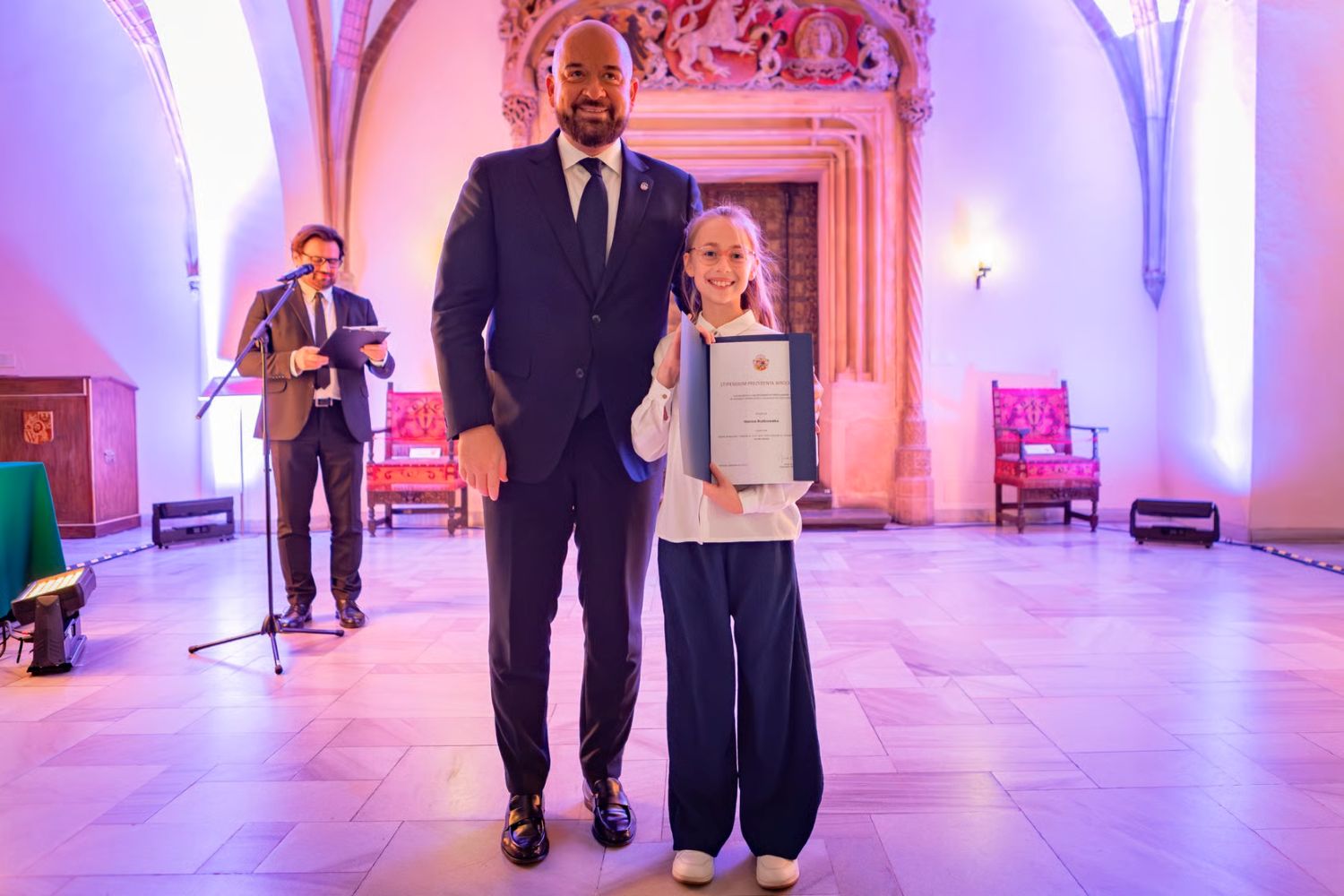 Z radością i dumą informujemy, że uczennica klasy IV d HANNA RUTKOWSKA otrzymała Stypendium Prezydenta Wrocławia dla młodych utalentowanych wrocławian w zakresie twórczości artystycznej. Uroczyste rozdanie stypendiów miało miejsce dnia 23 października 2025 r. w Sali Wielkiej wrocławskiego ratusza. Dyplomy osobiście wręczał stypendystom Prezydent Wrocławia Jacek Sutryk.